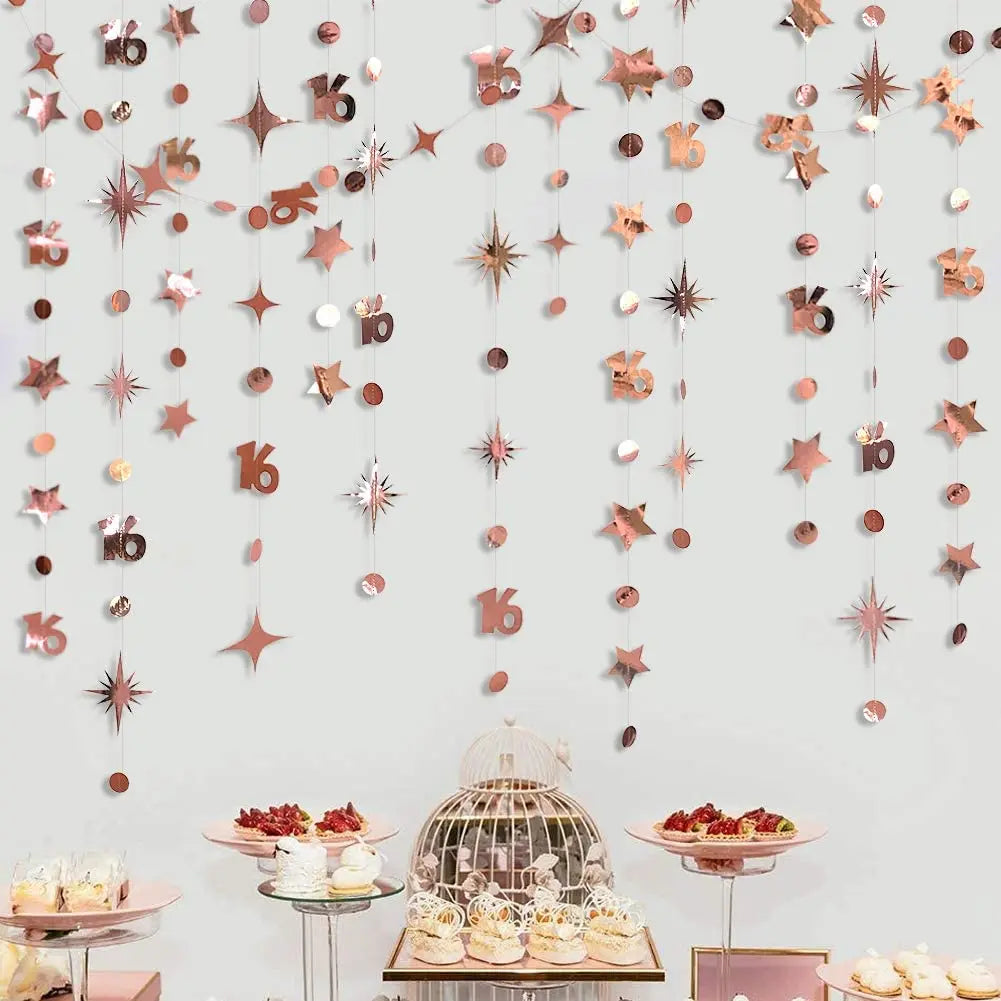 Package includes: 1 strings of 11 feet/3.5 meters birthdya number star and circle dots garlands.(Three Style are shipped randomly)