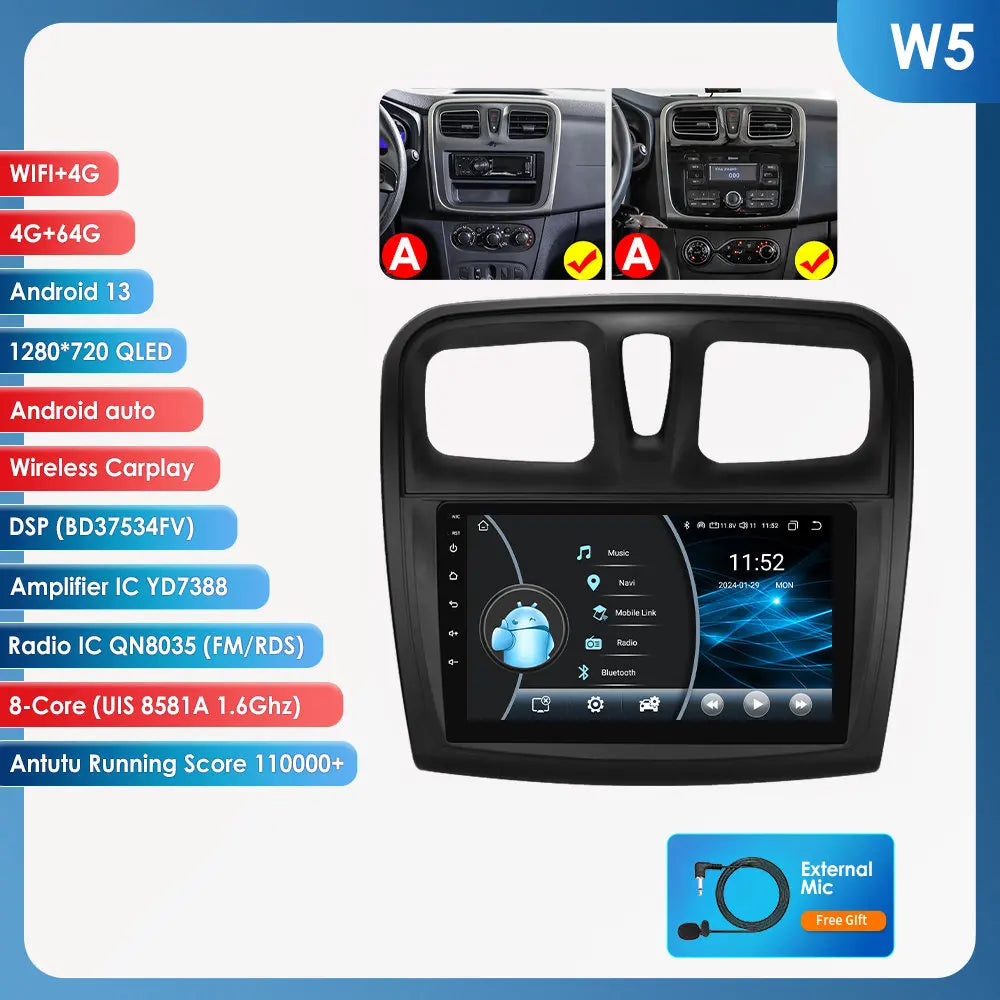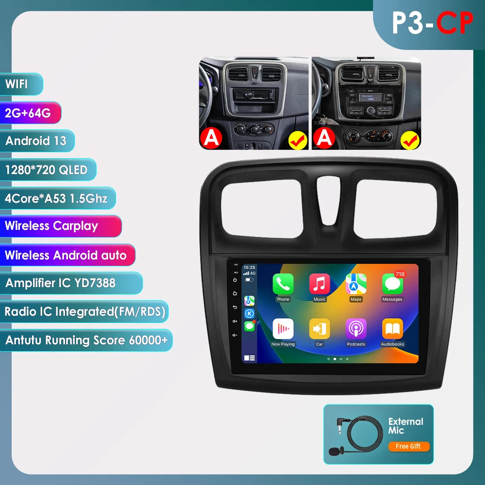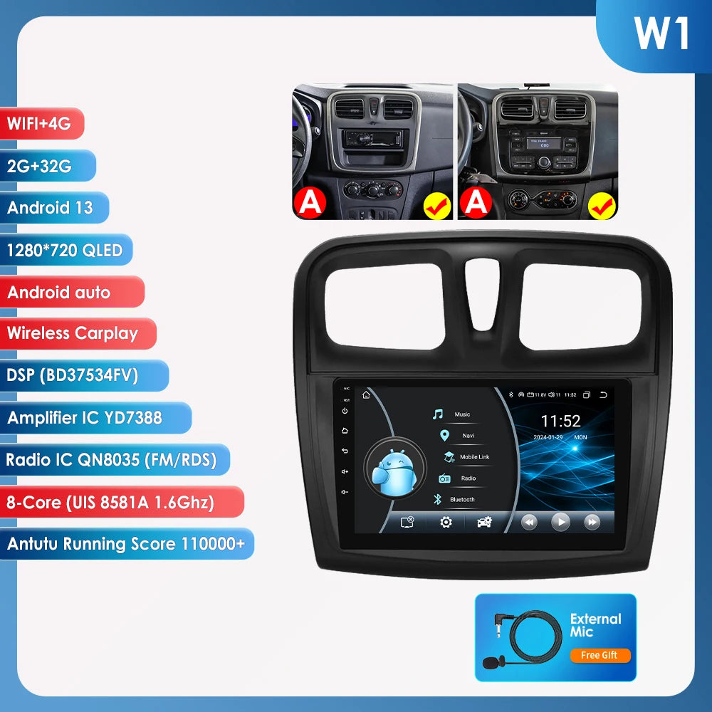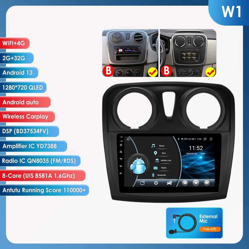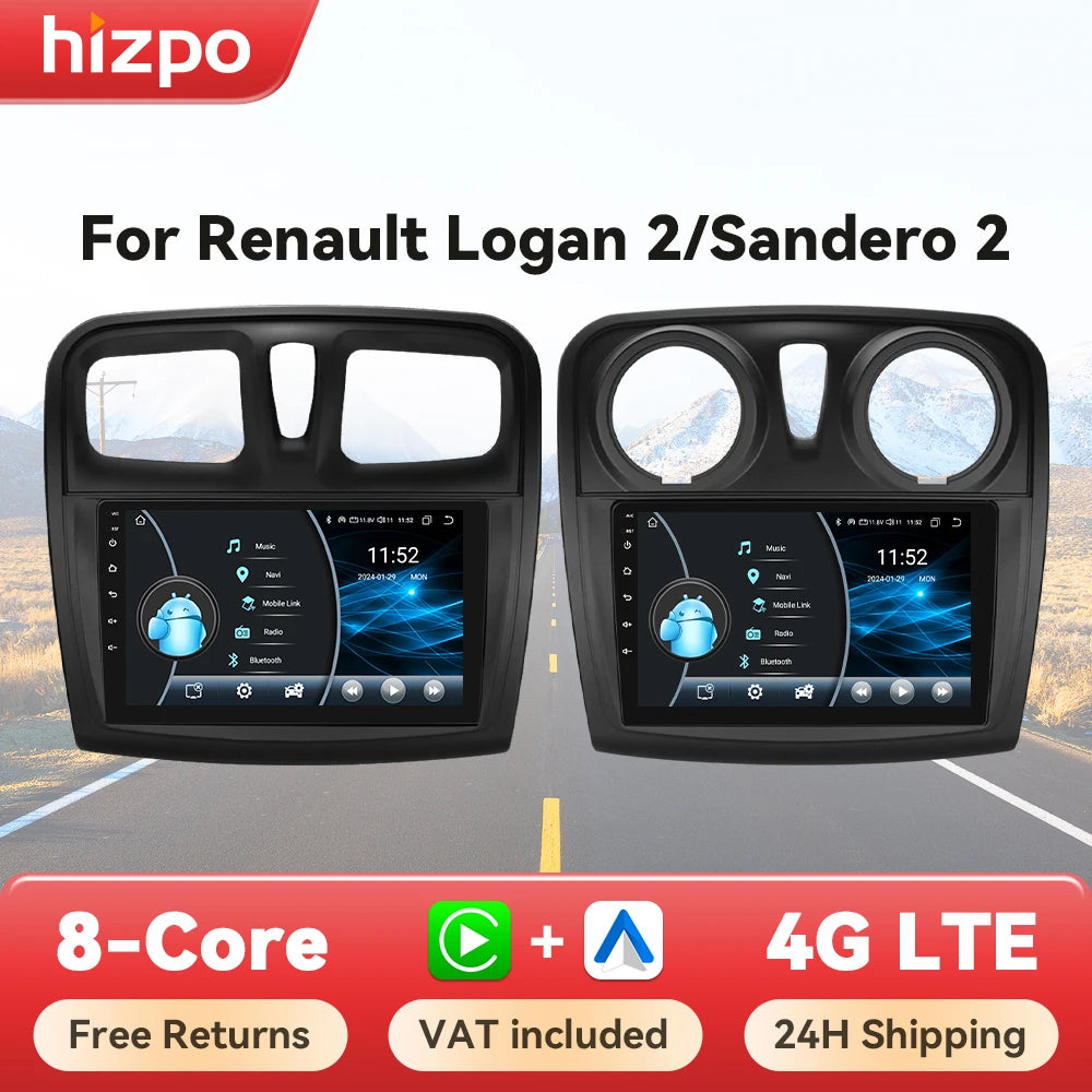 Hizpo Android Auto Radio For Renault Logan 2 2012-2019 Sandero 2 2014-2019 4G Car Multimedia GPS 2din Autoradio CarPlay WIFI DSP