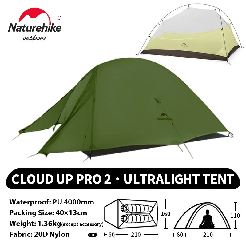 Naturehike Cloud Up 2 People Tent Ultralight 20D Camping Tent Waterproof Outdoor Hiking Travel Backpacking Cycling Fishing Tents