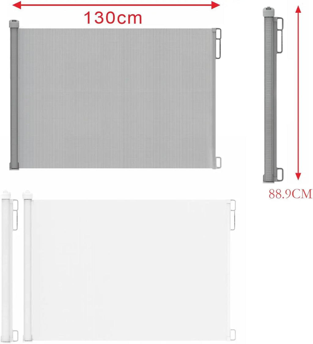 The maximum width of the baby stair door can be extended to a height of 51" and 35". Stair gate is widely used in stairs, doors, courtyards, corridors, terraces, indoor and outdoor. It has a skirting installation design so that the retractable dog gate fits the wall better.
