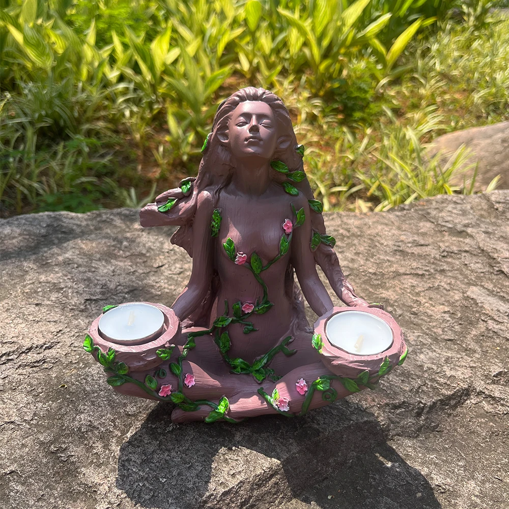 Forest guardian goddess the mother of the earth nature protector balance candle candle holder resin ornament