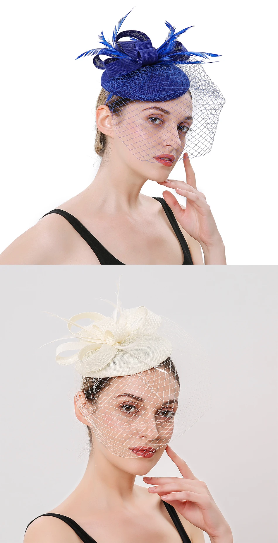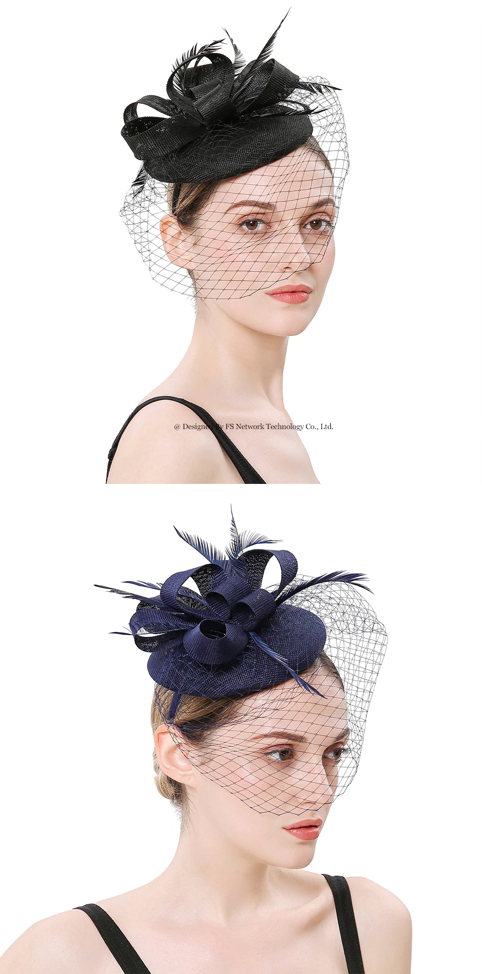 FS Fascinator Veil Pillbox Hat Ladies Feather Headwear Wedding Bride Dresses Headband Elegant Women Church Hats Hair Clips 2019
