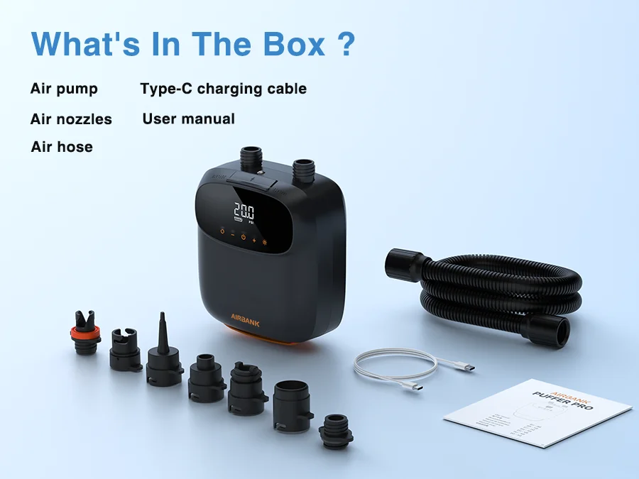 AIRBANK PUFFER Pro 20PSI Rechargeable Air SUP Pump for Inflatable Tent SUP PVC Boat Kayak Accessories for Surfing Kite Mattress