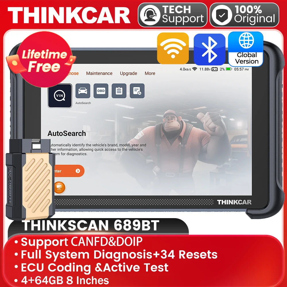 THINKSCAN 689BT OBD2 Bi-directional Scan Tool 34 Services ECU Coding All-in-One Full System Diagnostic Scanner Support CANFD&DoIP Lifetime Free
