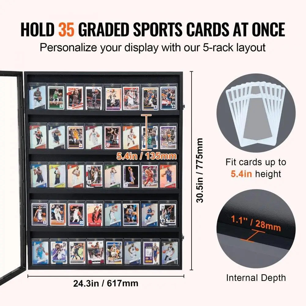 35 Graded Sports Card Display Case, 24.3x30.5x2.1 in, Baseball Card Display Frame with 98% UV Protection Clear View PC Glass, Lockable Wall Cabinet for Football Basketball Hockey Trading Card
