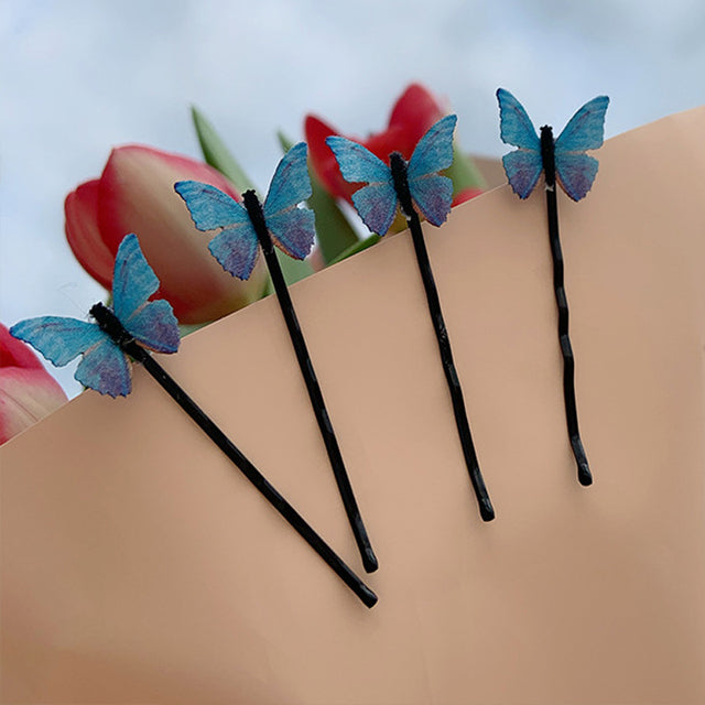 4 piezas horquilla de mariposa azul soñador dulce clip lateral accesorios para el cabello chica flequillo clip horquilla palabra clip