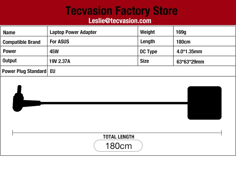 100% NEW Charger For ASUS ,45W 19V 2.37A 4.0*1.35mm Connector tip.