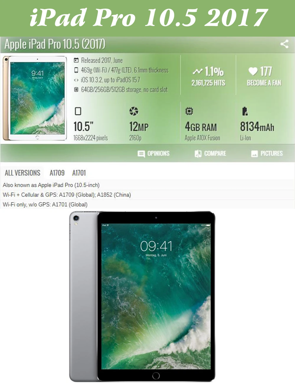 Model Number: iPAD Pro 10.5 2017