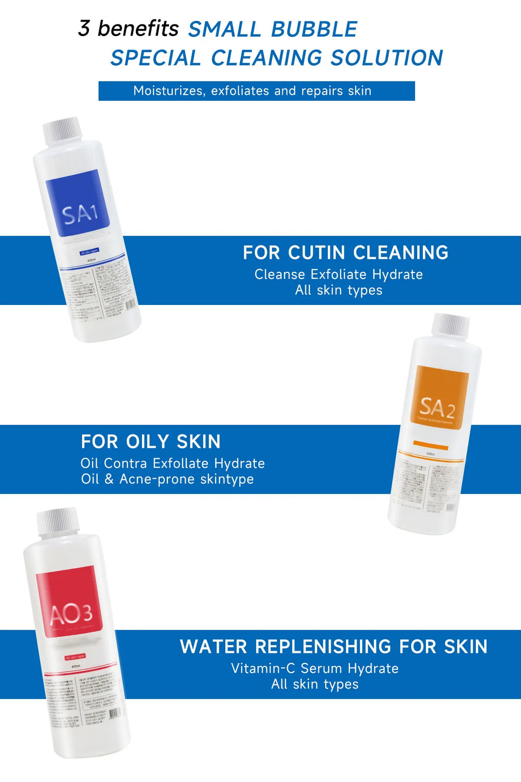 NEWGAGA 3pcs Water Facial Skin Care Face Serum Aqua Peeling Solution 400ml For Facial Machine Deep Cleaning Skin Rejuvenation