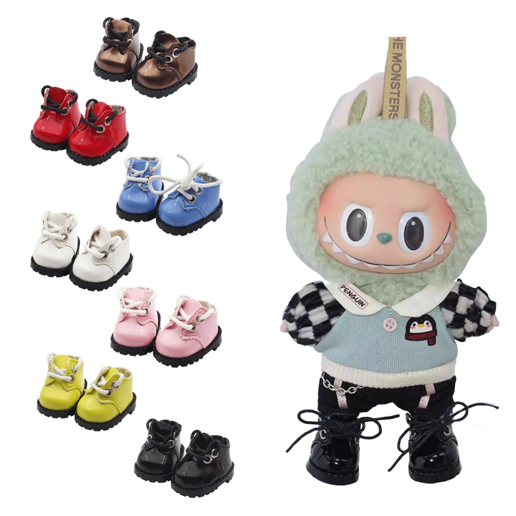 Labubu Shoes (3.8*2.3cm) for 17cm Labubu Macaron and 10cm EXO /Cotton Doll Finger Shoes Doll Leather Shoes