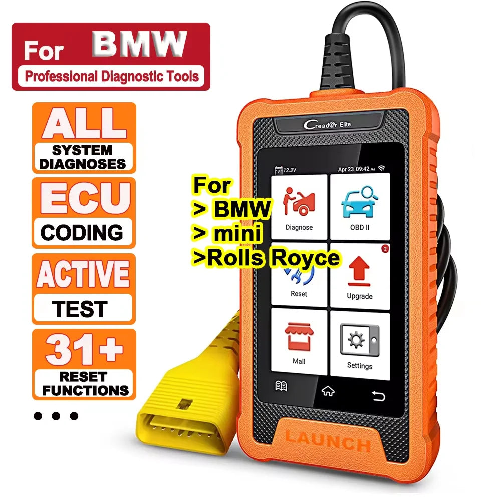 The OBD2 function of launched LAUNCH Creader Elite diagnostic scanning tool is suitable for more than 99% of OBDII vehicles of many brands in America/Asia/Europe, not only for BMW/MINI/RR....