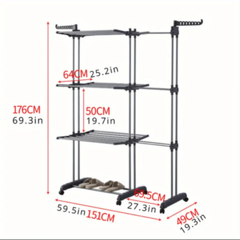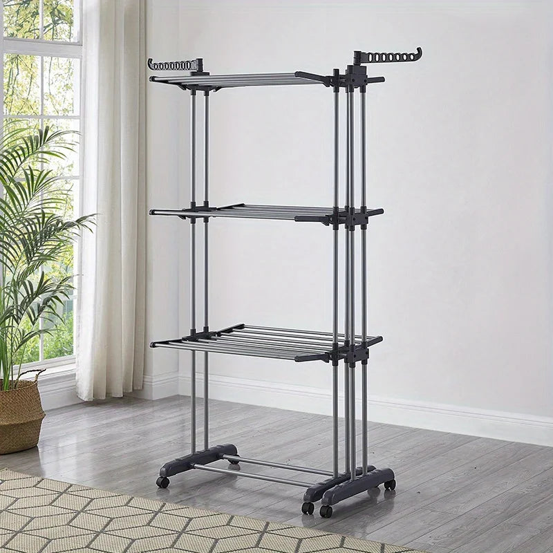 Clothes Rack Foldable Drying Rack 4 Tiers with Wheels Large Laundry Rack for Indoor and Outdoor Use