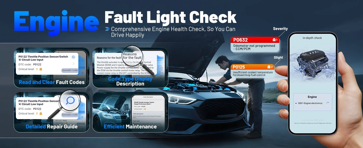 Perform the regular engine checks to pull fault codes will avoid engine failure or replace the engine, thus withstanding huge amounts of repair cost. Any fault that illuminates the check engine light (CEL light).