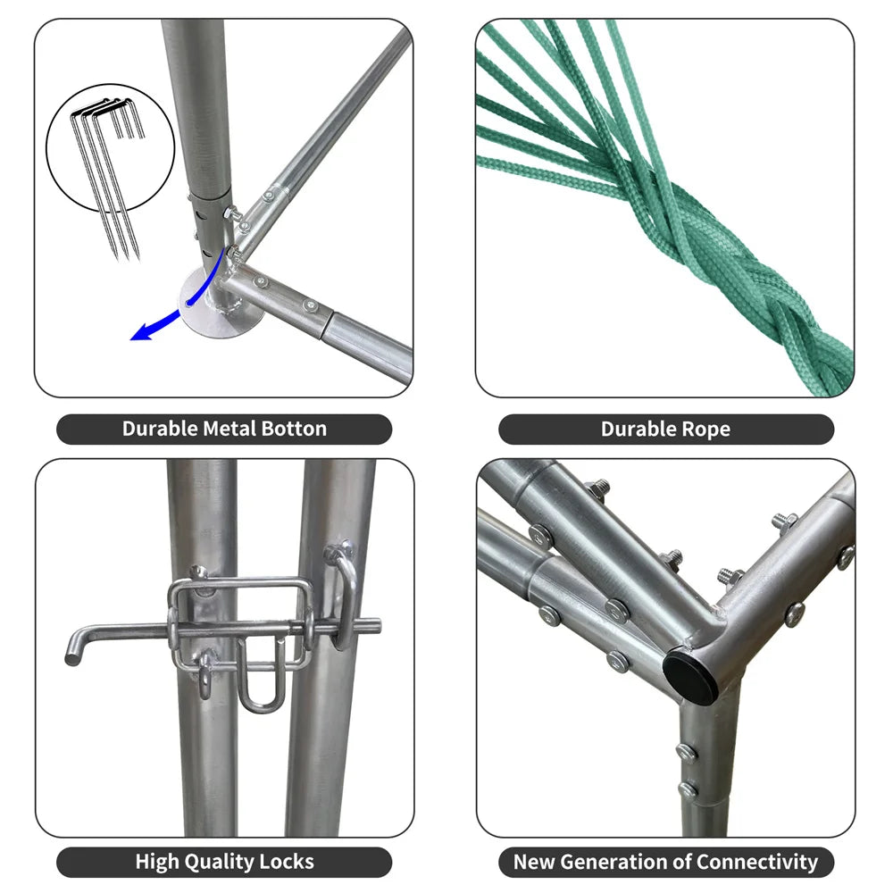 Comprehensive Mesh & Ground Pegs - The nylon mesh we use is exceptionally durable and impact-resistant, It resists wear and aging, ensuring a long lifespan, Its elasticity and deformation capabilities allow it to adapt to various material shapes while maintaining stability, Moreover, the mesh has high tensile strength, making it resistant to breakage or deformation, and included extra ground pegs to firmly anchor the coop in the soil, providing reliable protection for your poultry