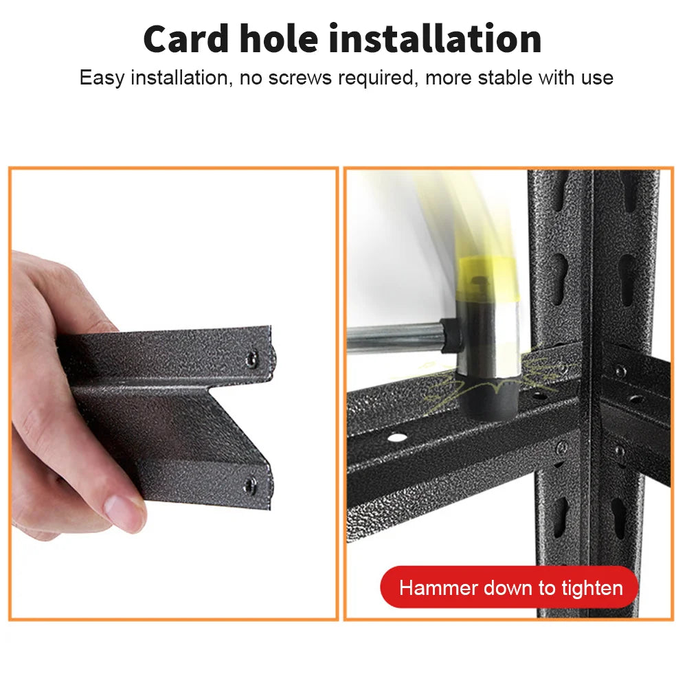 ★Easy To Assemble: The shelving rack is easy to assemble with no screws or bolts are used. Comes with hammer*1, glove*1.