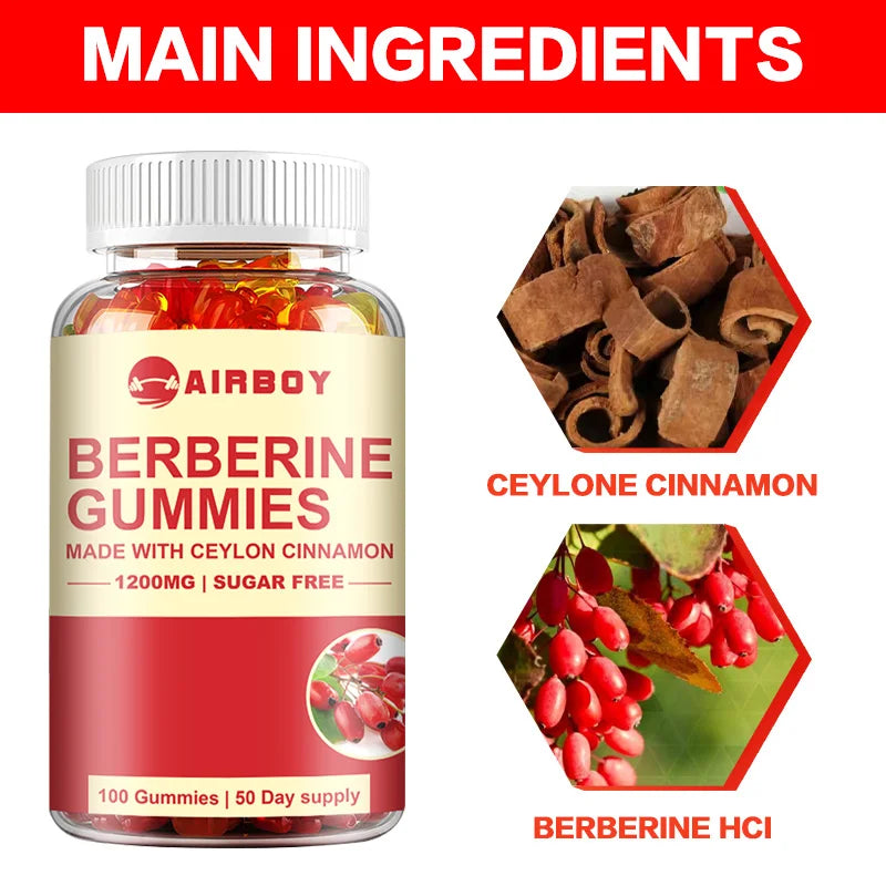 Berberine Gummies - with Ceylon Cinnamon - Immune support, metabolism and gastrointestinal function - 100 Gummies