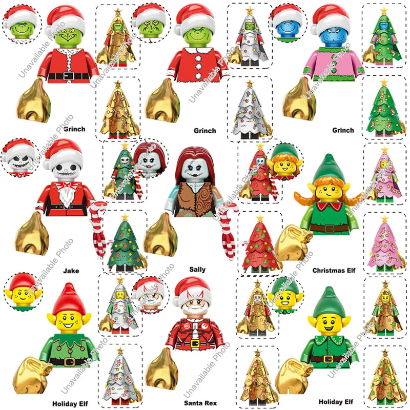 Hot Toys TV6302 TV6303 2024 Merry Christmas Gift Grinch Holiday Elf Santa Rex Darth Vader Building Blocks Mini Action Figure Toy