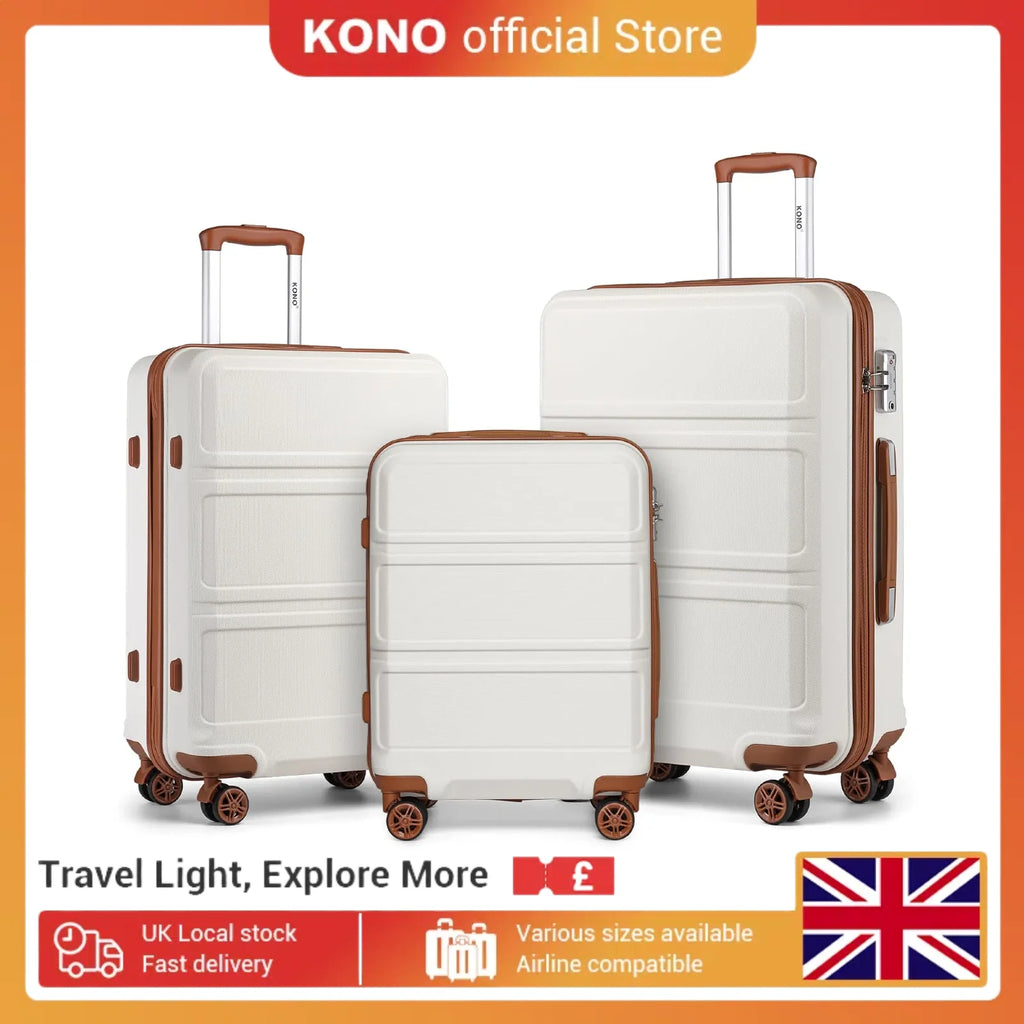 Kono Lightweight Cabin Suitcase - 20/24/28 Inch ABS Hard Shell, Fits EasyJet Under Seat, large-Compact Carry-On Trolley Case
