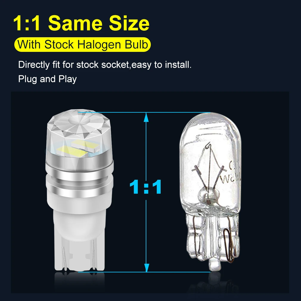 Compatible with: 194 T10 W5W 147 152 158 159 161 168 184 192 193 259 280 285 447 464 555 558 585 655 656 657 1250 1251 1252 ...(For Reference Only)