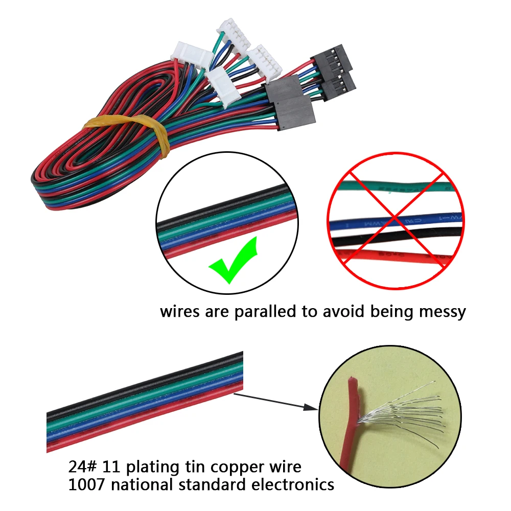 3DSWAY 3D Printer Parts 4pcs/lot 1M/2M DuPont 2.54 Line 4pin to 6pin Stepping Motor Connector Cable Nema17 Stepper Motor Wire