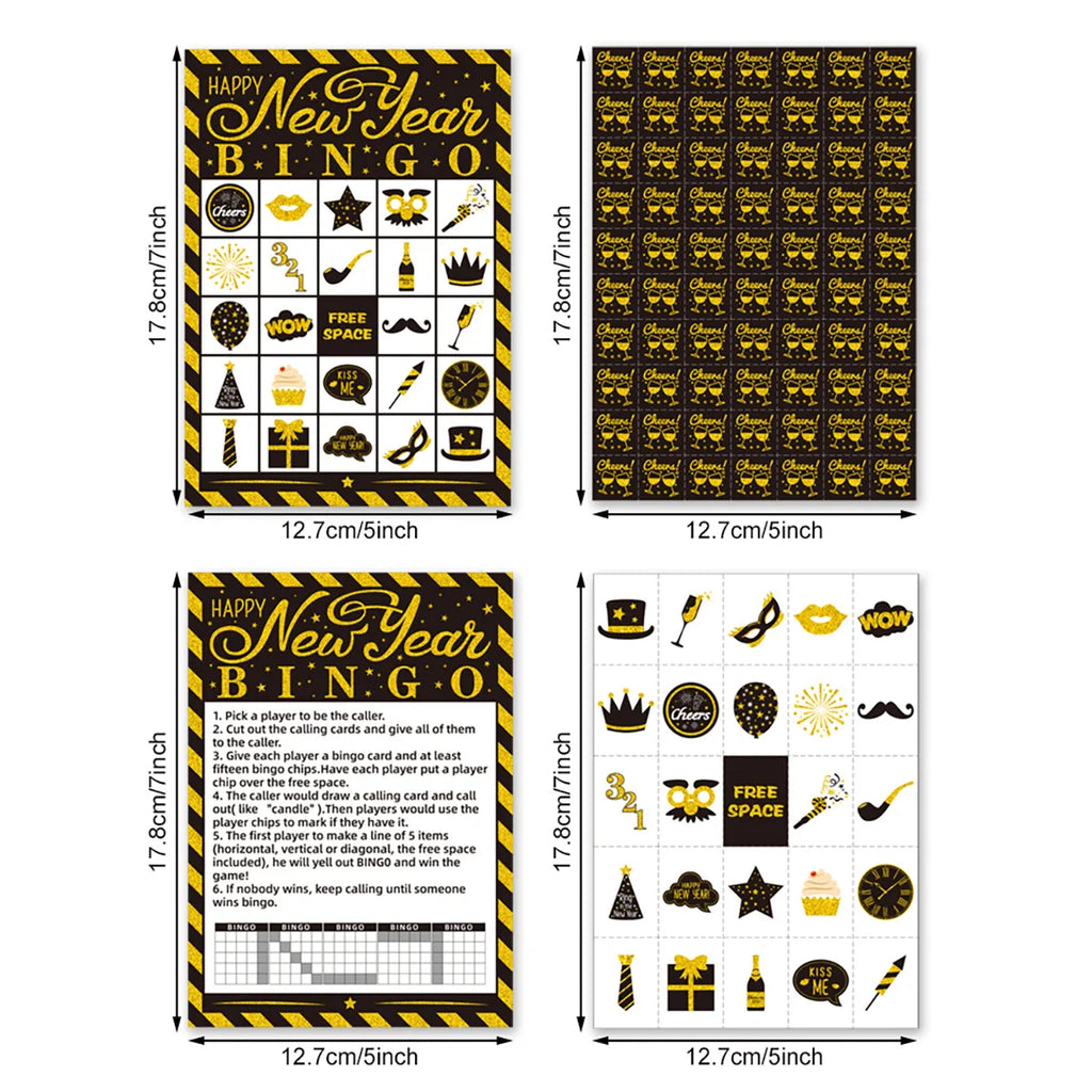 1 Set 2025 Happy New Year Theme Bingo Desktop Game Cards for 24 Players Family Classroom New Year Party Favors Decoration