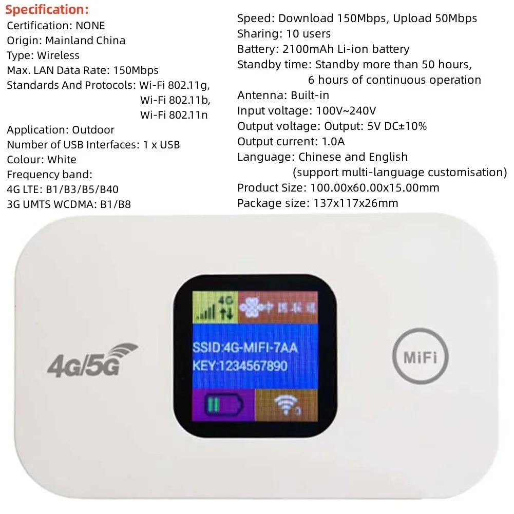 4G LTE Wifi Router Wireless Portable Unlock Modem Mini Outdoor Hotspot 150Mbps Mobile WiFi Router Pocket Repeater for Home Car