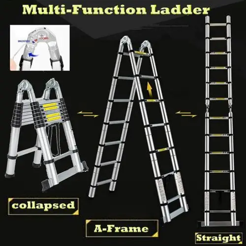 - The Telescopic loft ladder is made of high-quality aluminum alloy, light weight and easy to carry. corrosion-resistant, strong and durable. Extension ladder is an ideal tool to help you draw walls, replace bulbs, clean windows, clean drains, repair roofs, etc. Suitable for home and business use. Telescopic Extension Ladder Aluminum Alloy Multi-Purpose Extendable Lightweight Ladder Steps for Roofing Business, Household Use. Telescopic ladder makes your life easier.