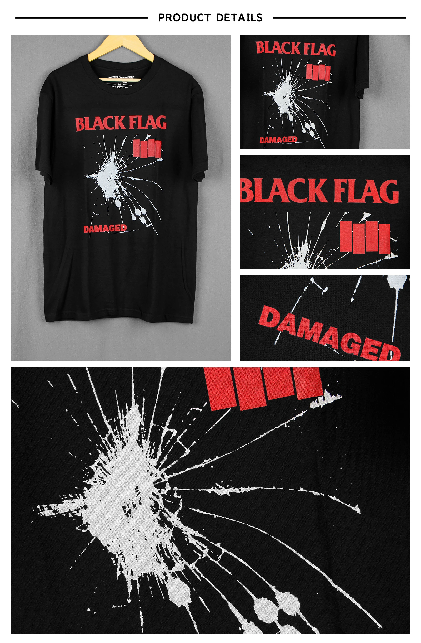 Black Flag T-Shirt Damaged 80S Hardcore Punk Band SST Husker Du Bad Brains Band Summer Short Sleeves Cotton Tee Men's Shirt