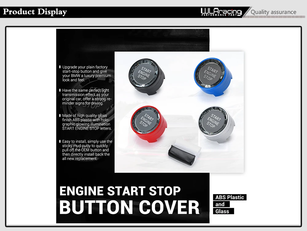 • Made of high quality gloss finish ABS plastic with holographic glowing illumination START ENGINE STOP letters.