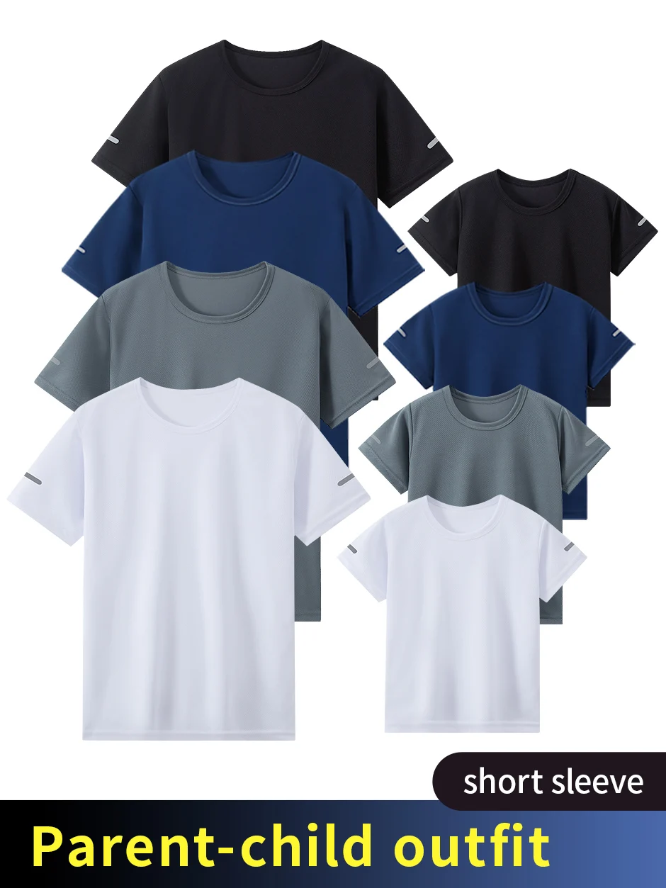 Children To Adults Multi-size Parent-child Short Sleeve Joker Children And Adolescents Quick-drying Sports Casual T Men's Shirt