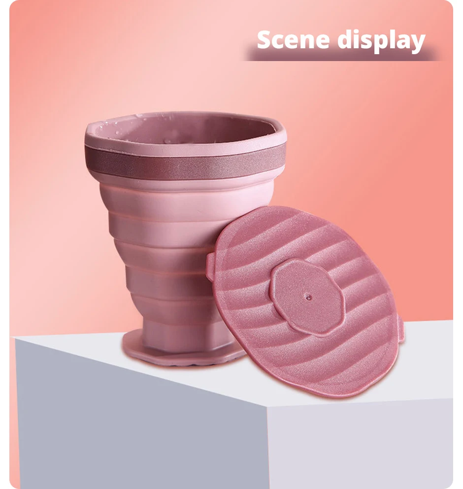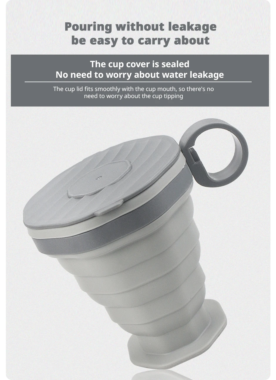 Portable foldable coffee cup, travel water cup, silicone foldable portable cup with lid, mouthwash Cup