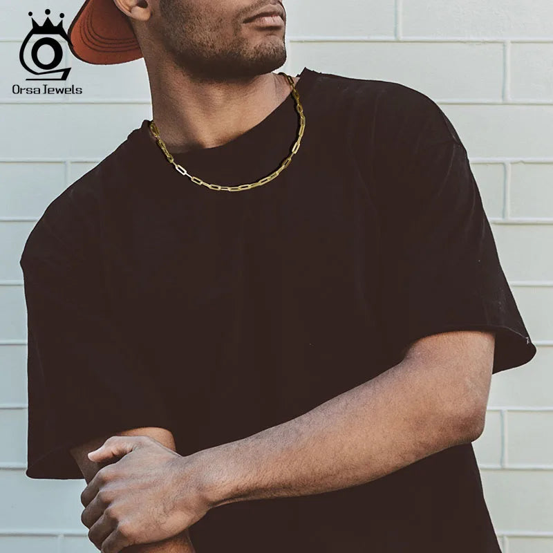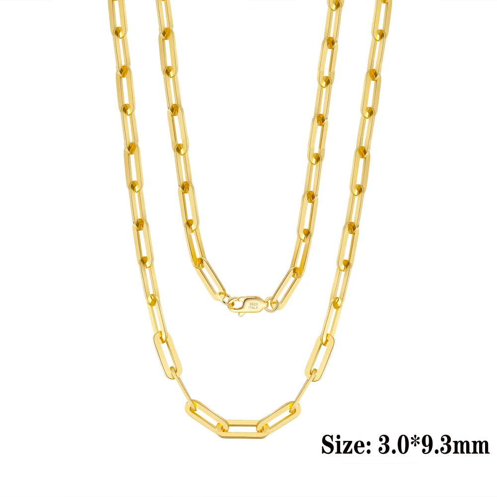 ORSA JEWELS 6mm 9mm 12mm Sizes Paperclip Link Chain Necklace 925 Sterling Silver 14k Gold Chain Man Woman Necklaces as Gift SC39