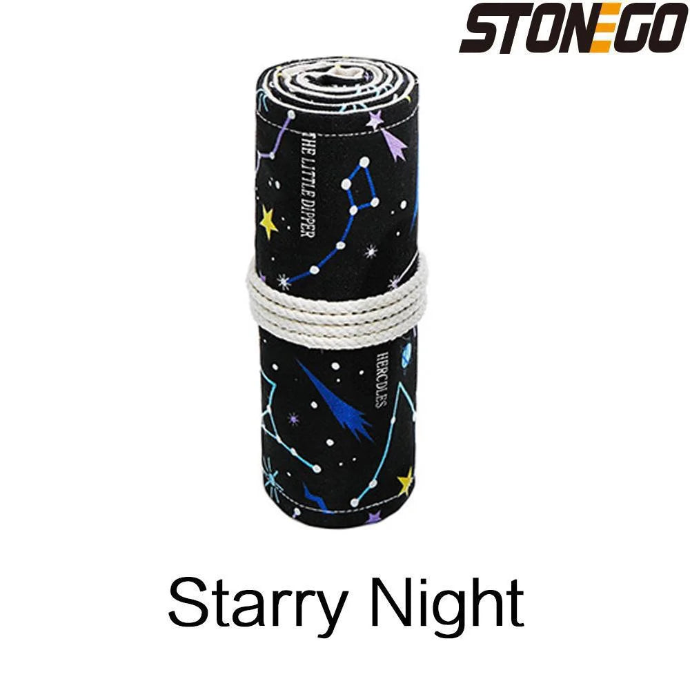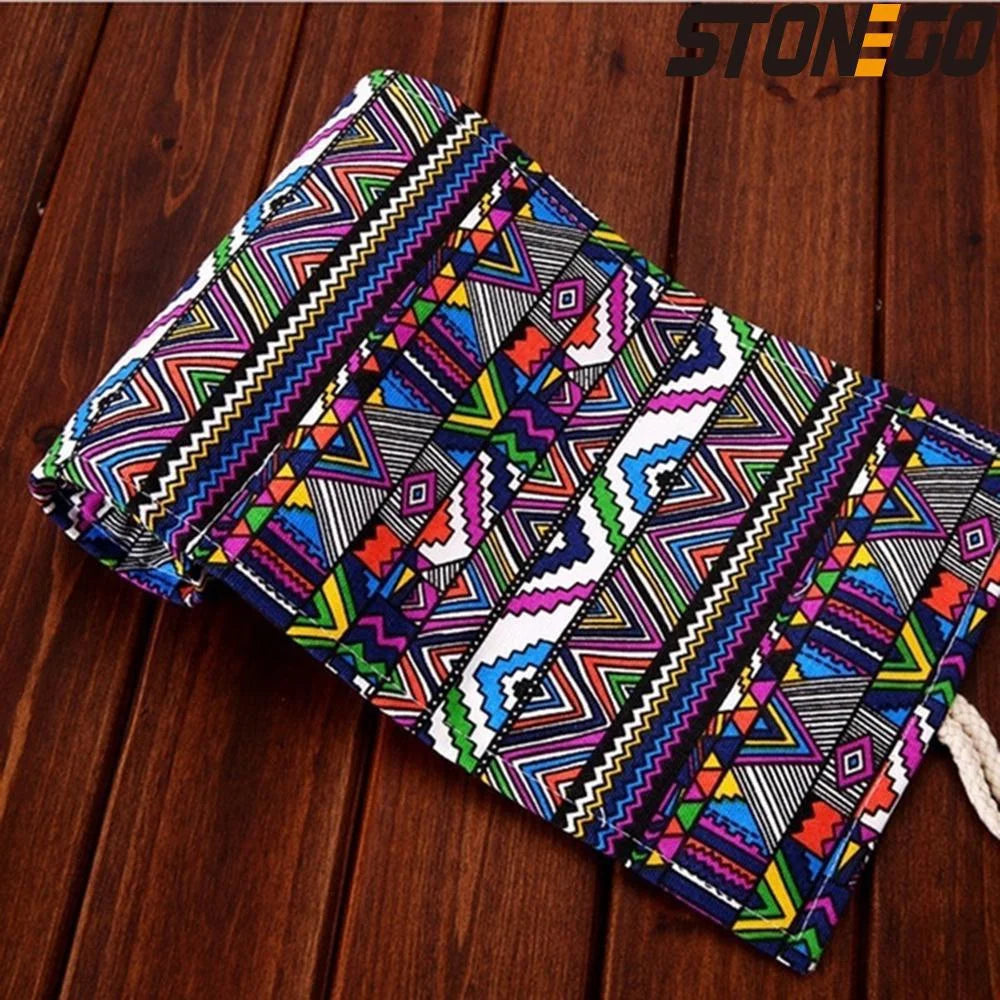 STONEGO 48/72 Holes Canvas Wrap Roll Up Pencil Pen Bag Holder Case Storage Pouch