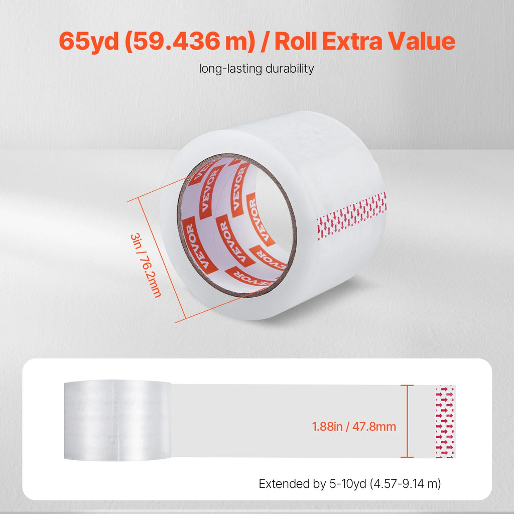 Affordable Combo: Our package tape set includes 6 rolls of 3-inch core tape, each 65yd / 59.436m long—5-10yd / 4.57-9.14m longer than standard rolls, providing longer usage and greater value.
