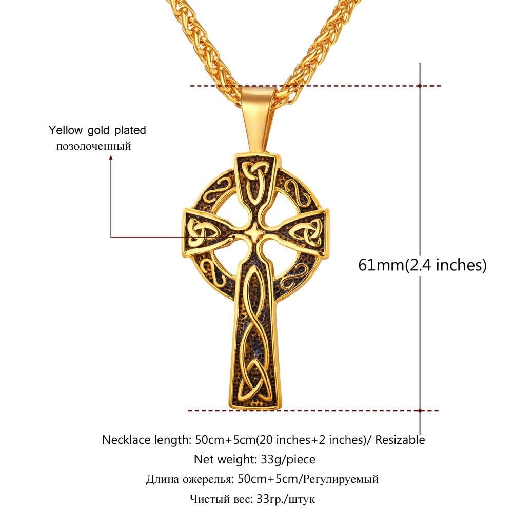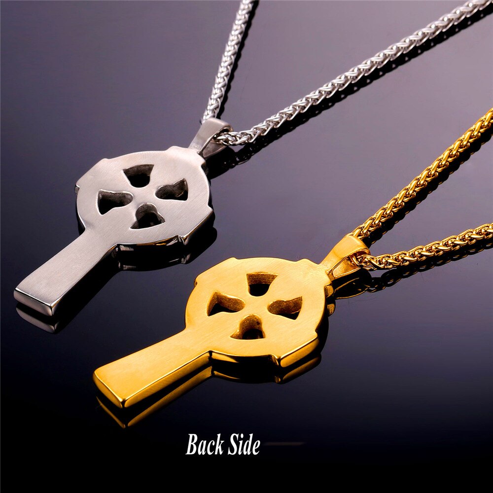 U7 Cross Irish Knot Necklace for Men Stainless Steel Triquetra Viking Triple Horn Of Odin Jewelry Necklace & Pendant P754
