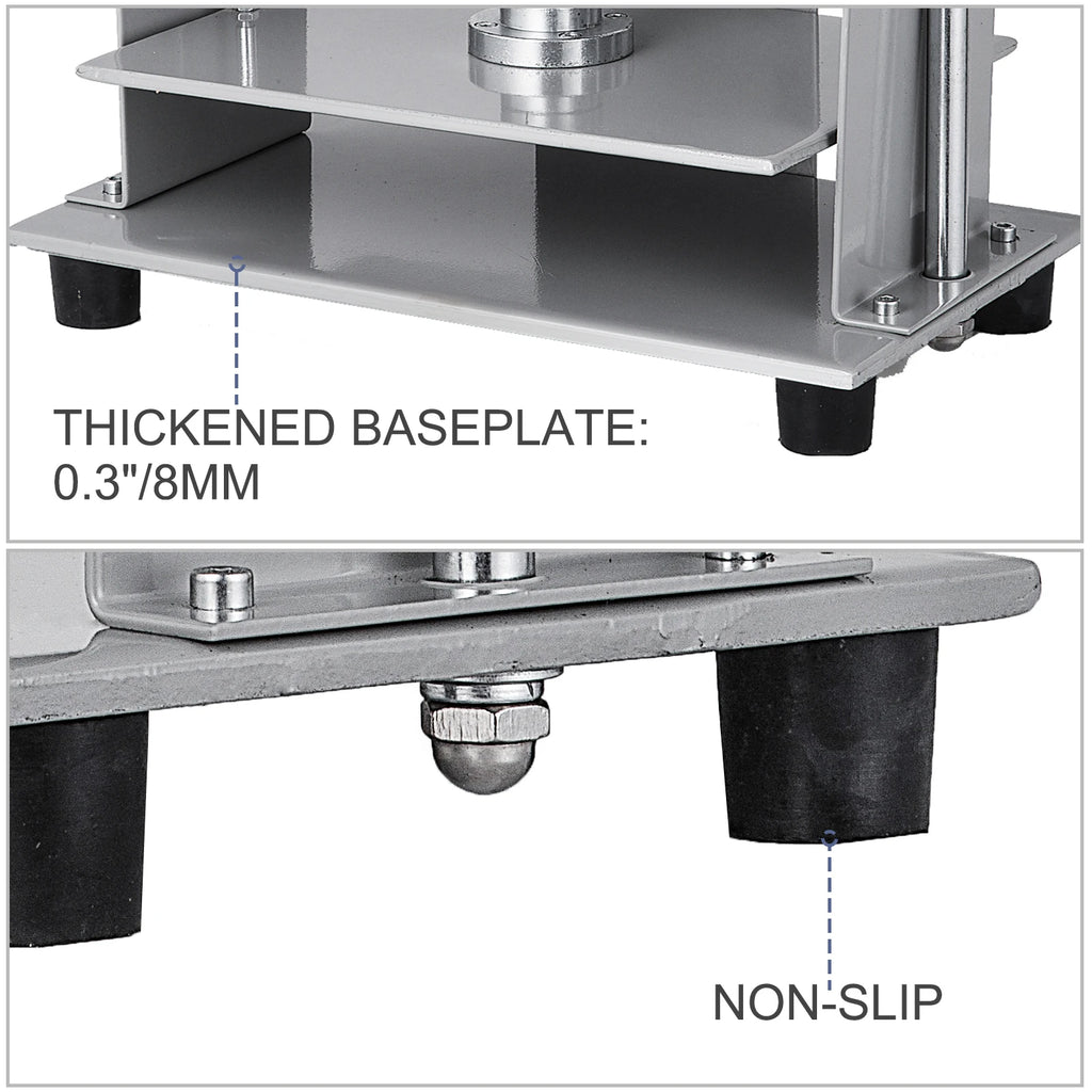 Effective Working Area & Pressure: Our powerful paper flattener is commonly suitable for A4 sized paper. It's obvious to perceive that your documents can be flattened more efficiently by 12" x 8.7"/305 x 220 mm large working area and 5.9"/150 mm flattening thickness. With the rotary handle, elongated nut, bold screw rod, and thickened plate, the pressure can reach 3306 lbs /1500 KG.