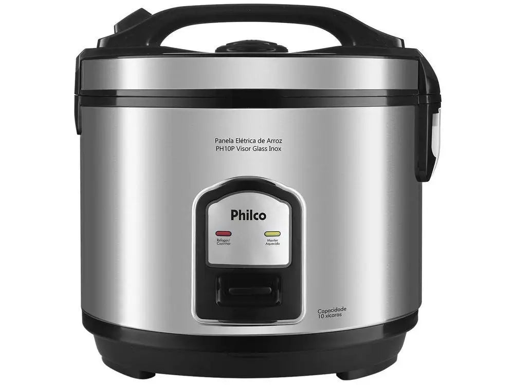 The Electric Rice Cooker Display Glass PH10P from Philco simplifies the preparation of your meal facilitating the day to day. With 700W power and capacity to prepare up to 10 cups of raw rice, resulting in approximately 4L, it prepares meals for the whole family. It also has the Keep Warm function, which guarantees a fresh rice when taking to the table. It has a lid with a display that allows monitoring the cooking of food, and is sealed with a locking button and steam output for greater safety in the preparation of food. Removable water collector, making it easier to clean. Bowl with non-stick coating Non-toxic non-stick, free of PFOA, has greater durability and ease of cleaning. Finished in stainless steel sophisticated design. Removable electrical cord. Accompany spoon and Cup meter Facilitates the use of the product.