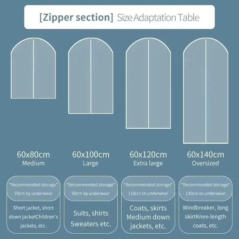 3. easy to clean, most clothes dust cover can be easily cleaned. Simply put them in the washing machine and follow the instructions. This also makes it easy to maintain and keep them clean.