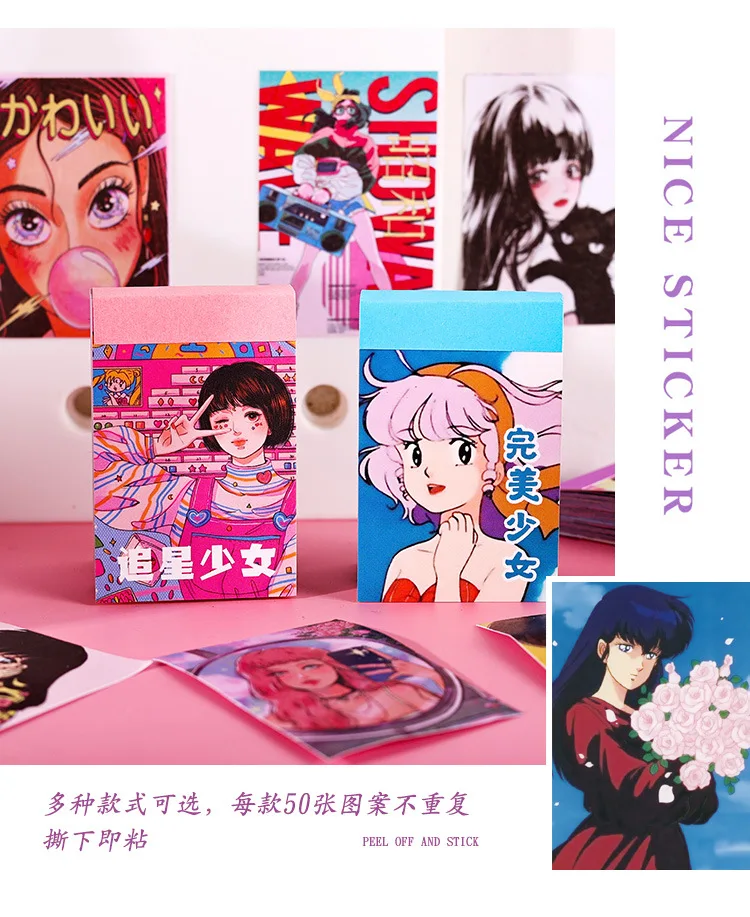 50sheets Retro Japanese Kawaii Girl Stickers DIY Scrapbook Mobile Phone Case Tablet Stationery Stationary Decorative Stickers