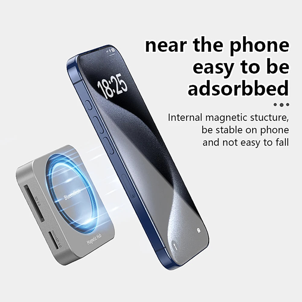 1. Magnetic Secure Attachment: Featuring a built-in magnetic structure, this USB C hub ensures your hard drive case stays firmly attached to your phone, preventing accidental detachment. Compatible with Magsafe phone cases, regular phone cases, or no case at all.