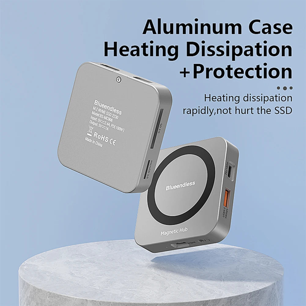 8-IN-1 Magnetic 2230 M.2 NVMe SSD Enclosure 10Gbps USB C Hub to HDMI-Compatible USB-C 3.2&USB-A 3.2 SD TF M.2 NVME SATA SSD Case