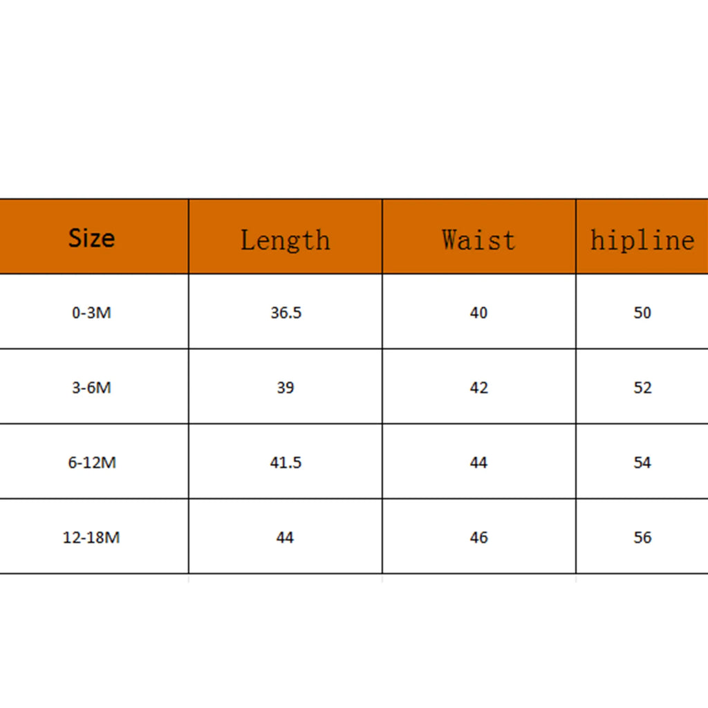 0-3M Length: 36.5 Waist: 40 Hip: 50 Advised Age: 0-3 Months