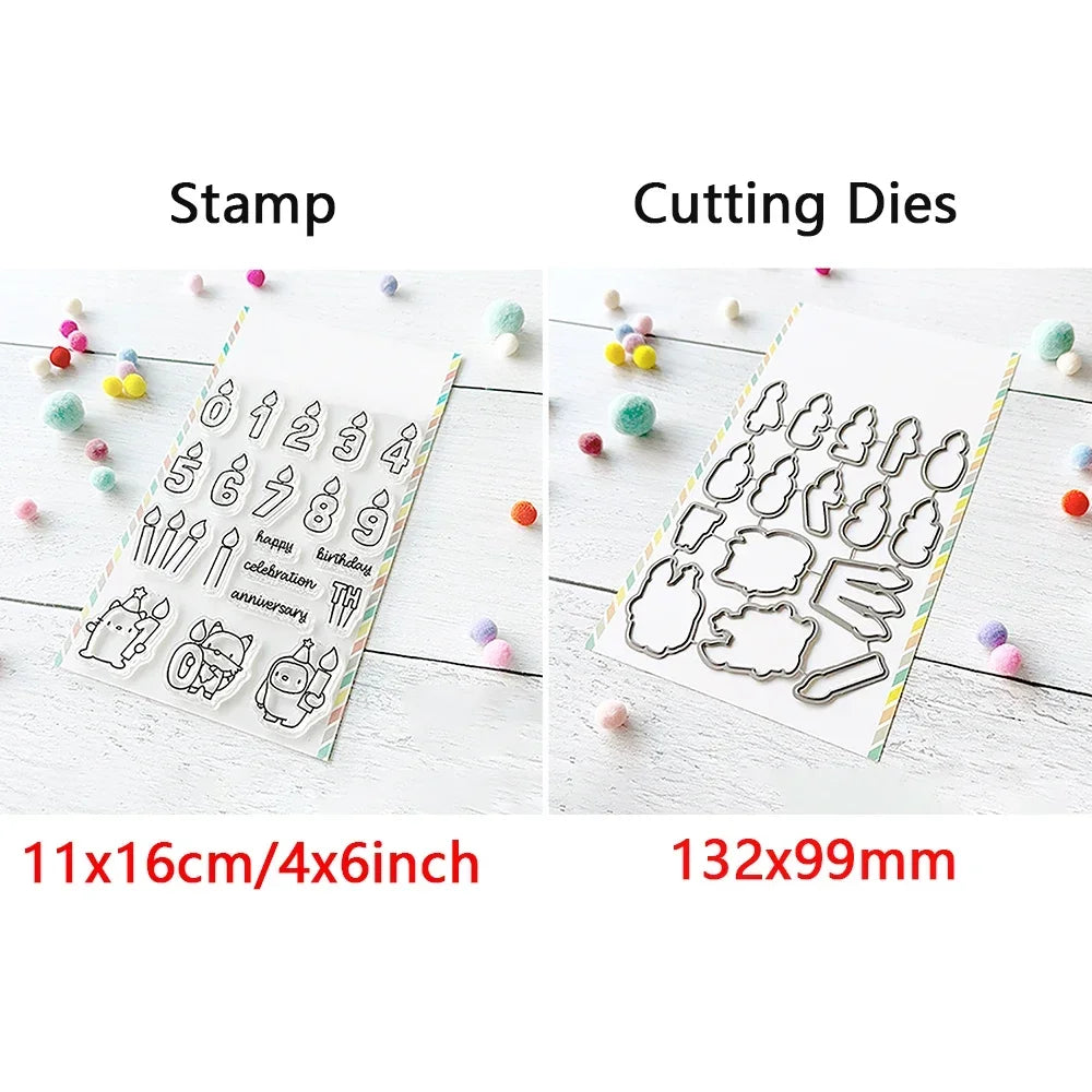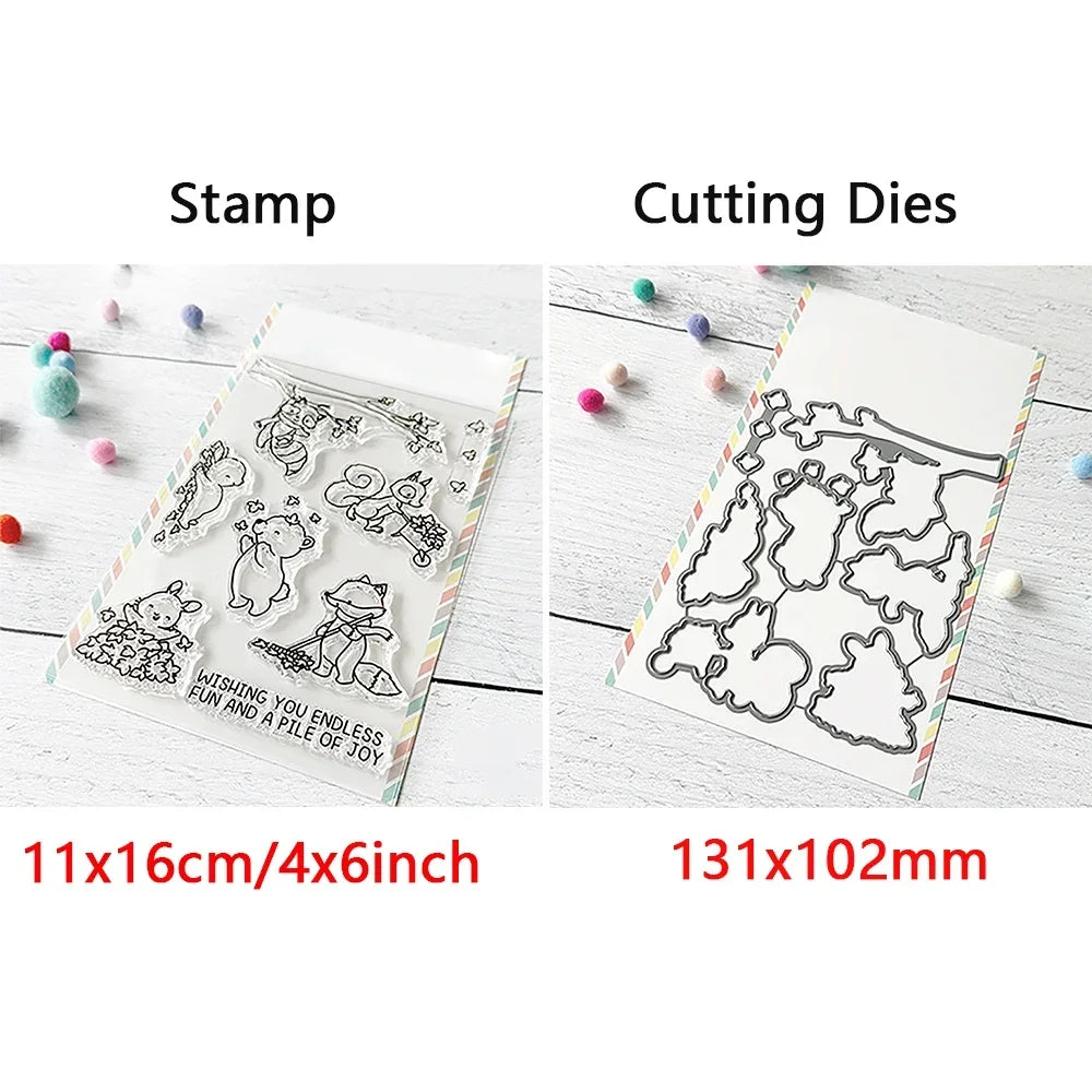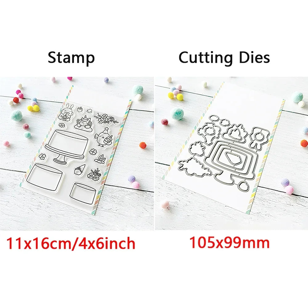 Birthday Cake Cute Frog Fox Animals Cutting Dies and Clear Stamps
