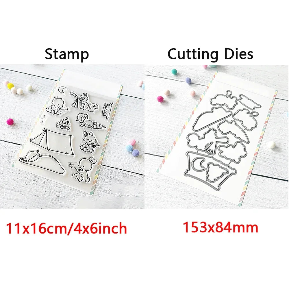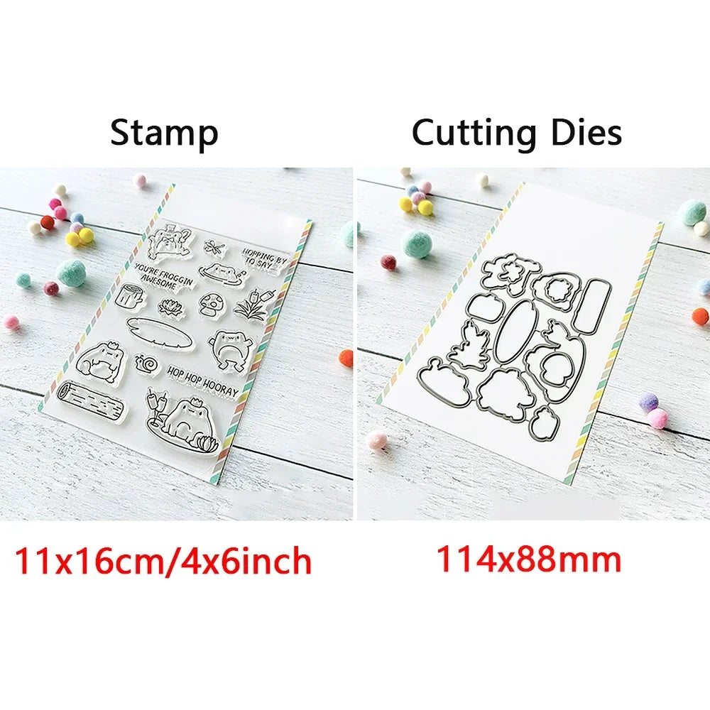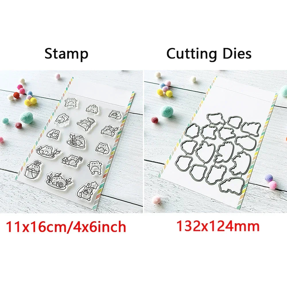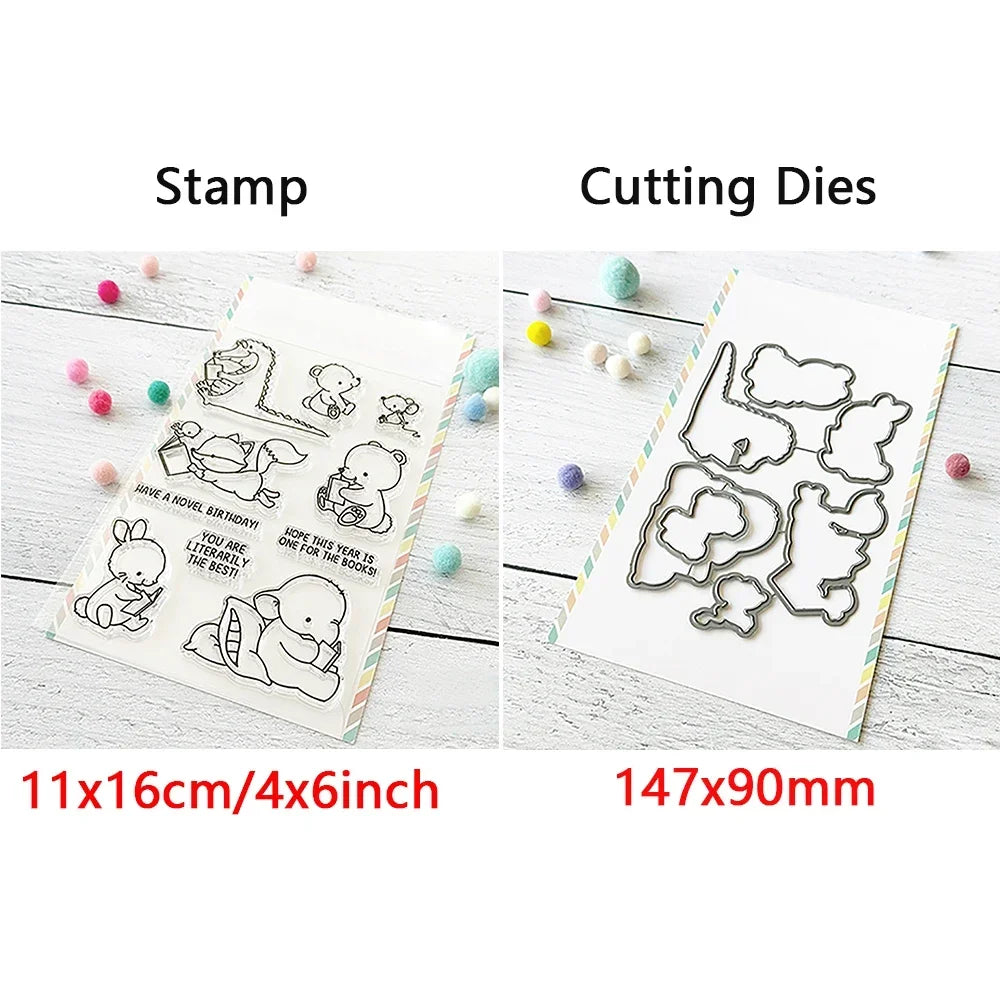 Birthday Cake Cute Frog Fox Animals Cutting Dies and Clear Stamps