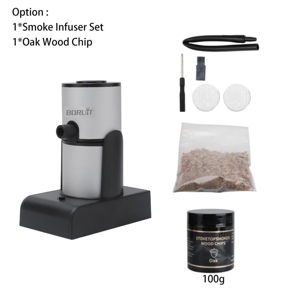 2. The smoking gun quickly makes smoking with various types of wood chips. It takes only 3~5 minutes to add cold smoke special flavor and aroma finish to food or drinks.