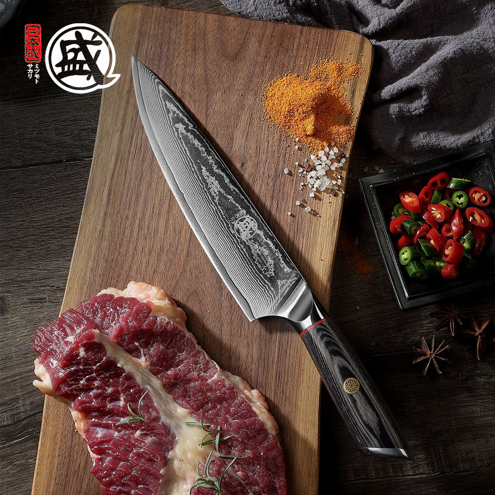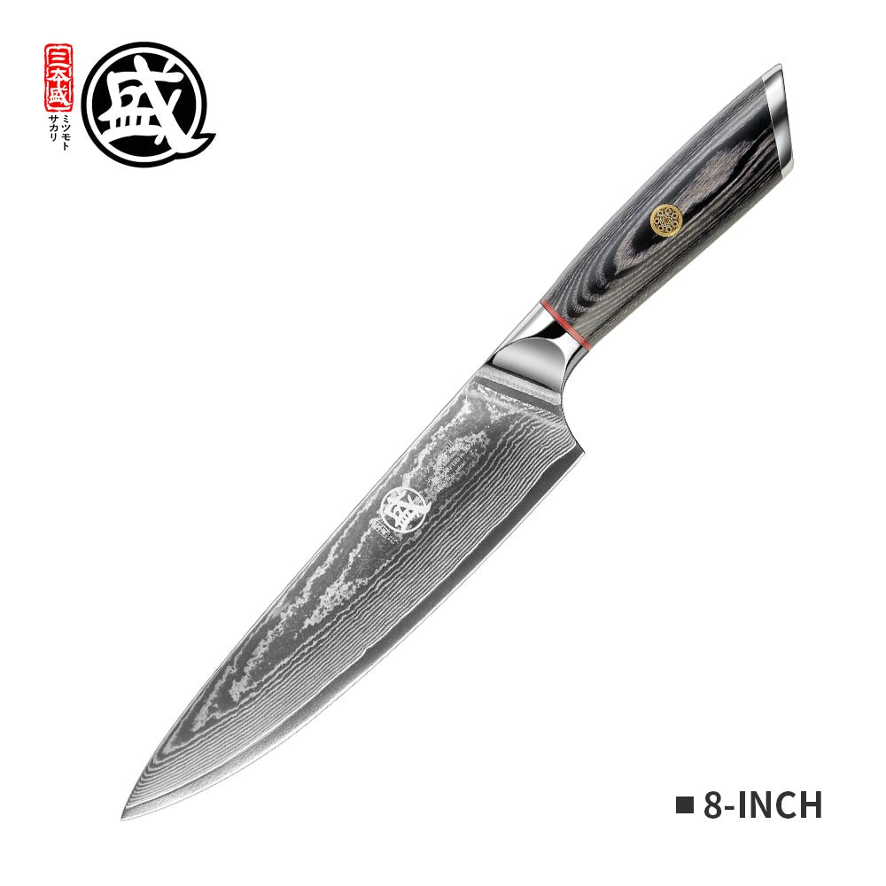 MITSUMOTO SAKARI 8''inch Japanese 67-layer Damascus Steel handcrafted Chef Knife durable wood Handle Wooden gift BOX