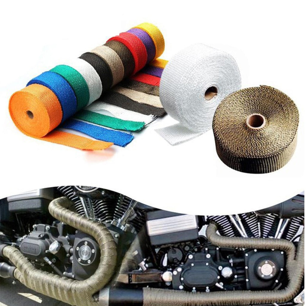 Motorcycle muffler Thermal Tape Exhaust Header Heat Wrap Manifold Insulation Roll Resistant with Stainless Ties 5cm*5M/10M/15M