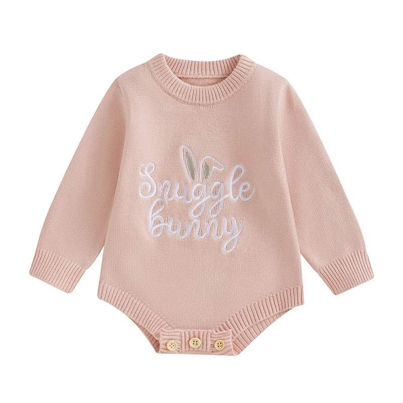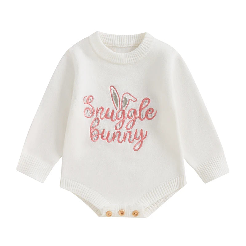 Baby Girl Easter Sweater Romper Infant Long Sleeve Round Neck Letter Bunny Embroidery RomperSize (cm)