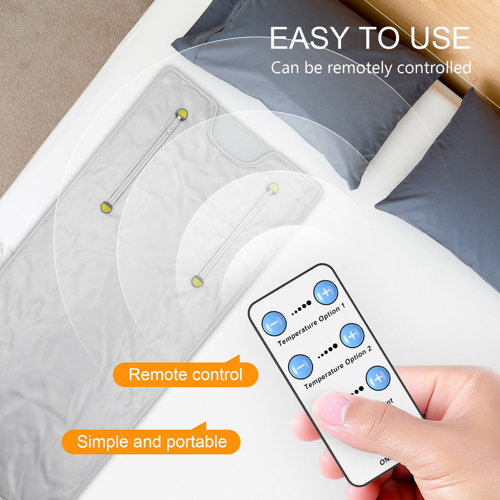 1.Note that there is no button battery in the remote control, please buy it yourself. The far-infrared fabric releases 9-14um far-infrared radiation, which can resonate with the cells of the human body at the same frequency. It has a natural thermal effect on the human body. Fat is oxidized into carbon dioxide, water and other oxygen compounds. As sweat is eliminated from the body, health effects are achieved.