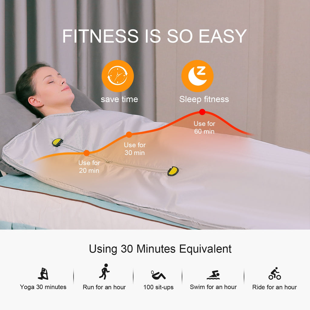 2. [Convenient thermostat]: It takes only 10 minutes to detoxify, evaporate, and cool down, and it will never deform. Adjust the temperature from 35 degrees Celsius to 75 degrees Celsius through the controller, and the time can be set from 15 to 60 minutes. The weight loss blankets in these two parts reduce detoxification on the front and back of the body. Burn fat, roll elephant legs, slender arms, squeeze the abdomen, slimming and detoxification.